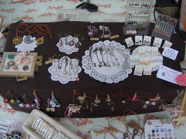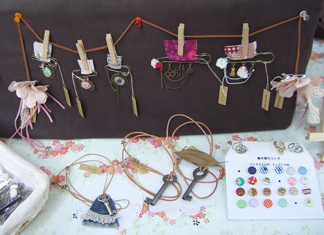 沢山の方が足をとめていただいて、嬉しいかぎりです。 しかも、先月着せ替えリングをご購入いただいた元気いっぱい親子がまた買いに来てくれました ![]() 先月は、トップのにレースとかついているものはないか、など色々とご意見をいただきました。 その親子の声で誕生した二種類のトップ。 普通の布だけや布にスタンプしただけのシンプルトップと、レースやデコったちょっとグレードアップなトップ。 親子はグレードアップをひとつずつ購入してくれました。 お客様の声をもとに作らせていただいた今回の着せ替えリングのトップ、大好評でした ![]() ほんと、お客様は神様ですね(-人-) 他にもいろいろとあるのですが、数日中に写真と一緒に書ければと思っています。 そして終わってぐったりの昨日。 土ぼこりと戦う後片付けの今日でございました… PR